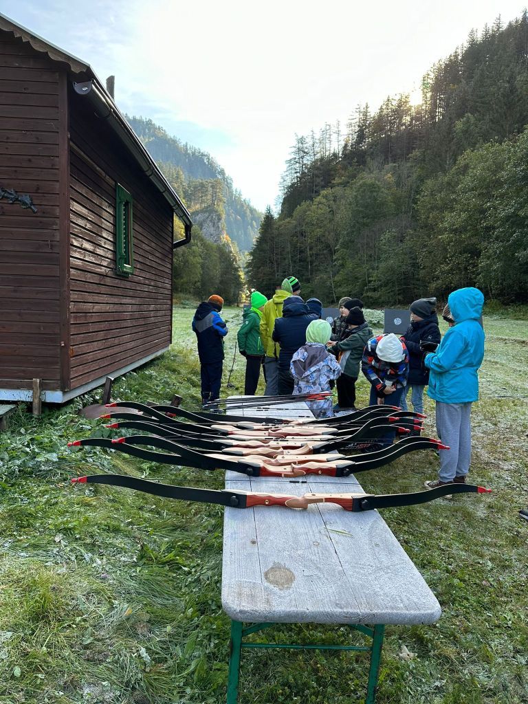 Montags um 08:15 Uhr begann die langersehnte Anreise per Bus zum Kinderhotel Appelhof. Dort angekommen, wurde nach einer raschen Zimmereinteilung das erste Mal das große Buffet von Seiten der Kinder ausgetestet. Mhmmm – war das lecker! Im Anschluss startete das Abenteuerprogramm: Bogen schießen, Klettern und eine Flussüberquerung. Nach dem Abendessen wartete noch ein weiteres Highlight auf uns – die Nachtexpedition. Im Dunkeln und mit Stirnlampen wanderten wir bei kühler Temperatur durch die Wälder rund um den Appelhof.